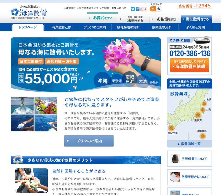 業界発!全国定額55,000円の海洋散骨Webサイトを開設