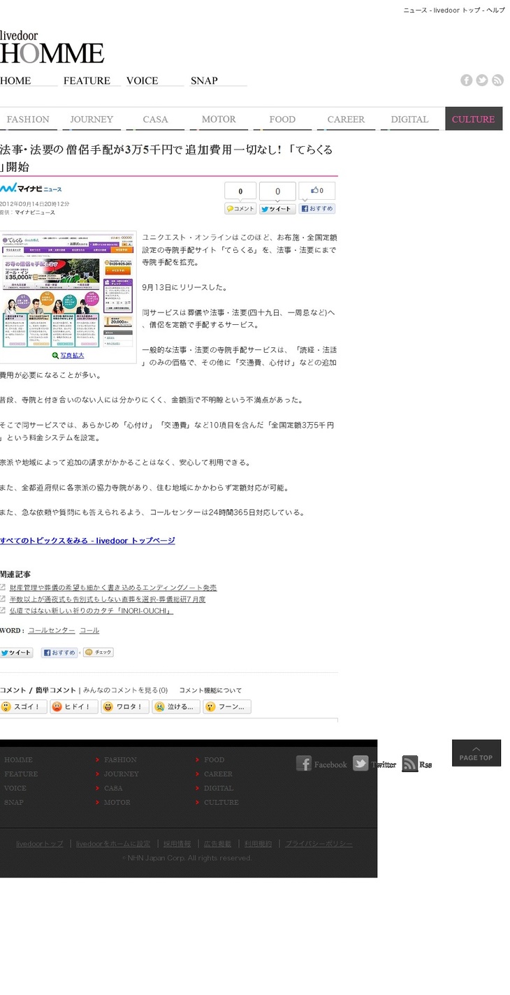 【livedoor HOMME】法事・法要の僧侶手配が3万5千円で追加費用一切なし! 「てらくる」開始http://news.livedoor.com/article/detail/6953588/