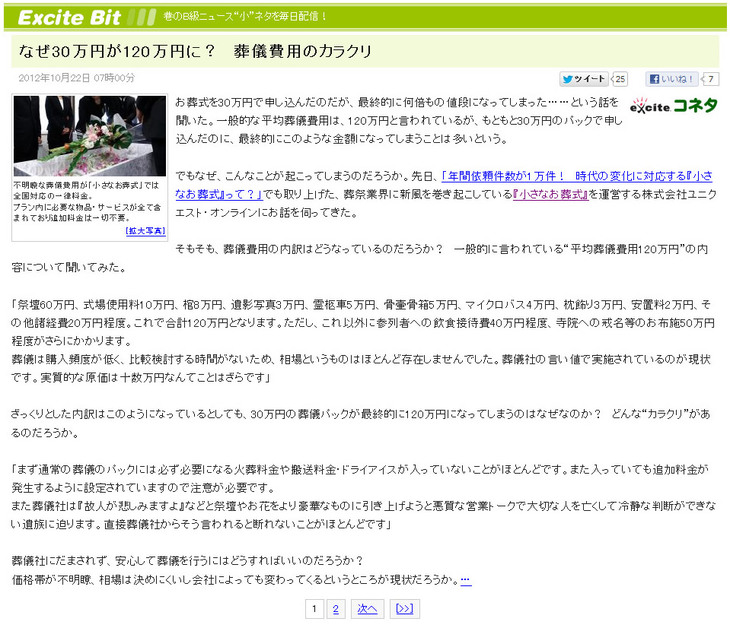 10月22日(月)exciteのニュースで小さなお葬式が取り上げられました